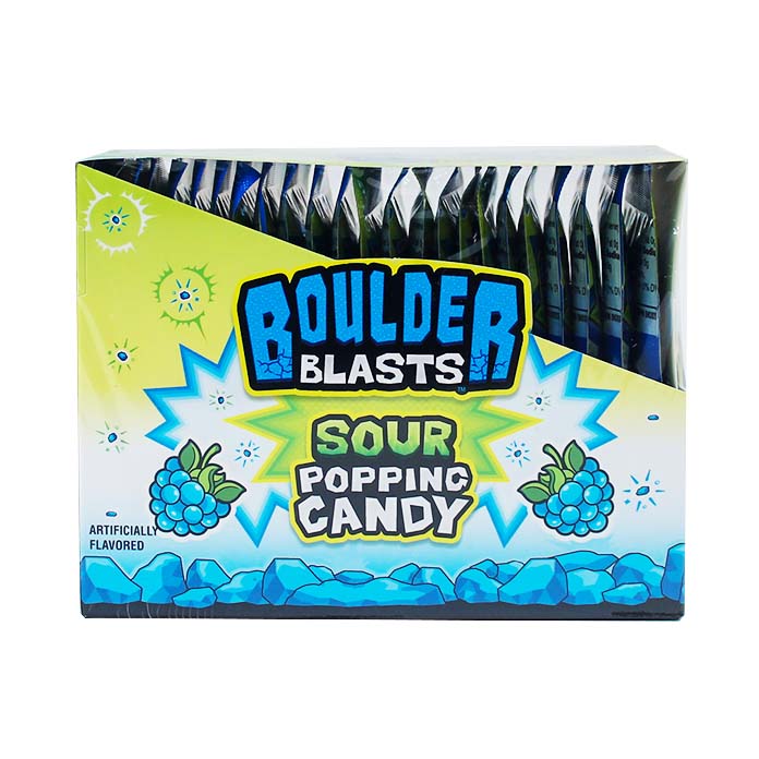 Sour popping candy in blue raspberry flavor. Feel the popping, fizzy sensation when the candy hits your tongue!