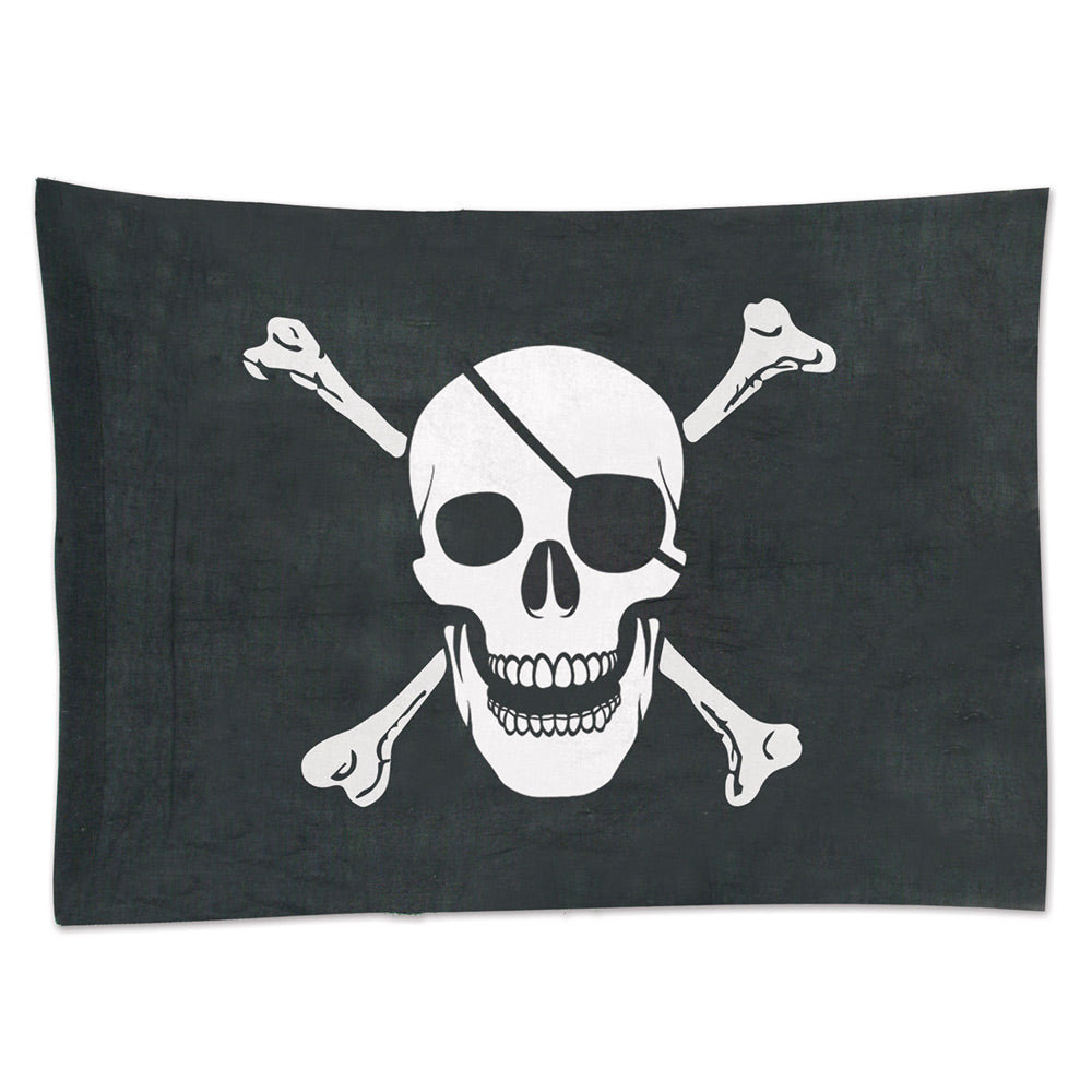Large cloth pirate flag with the skull and bones emblem on a black field. 29" x 40".