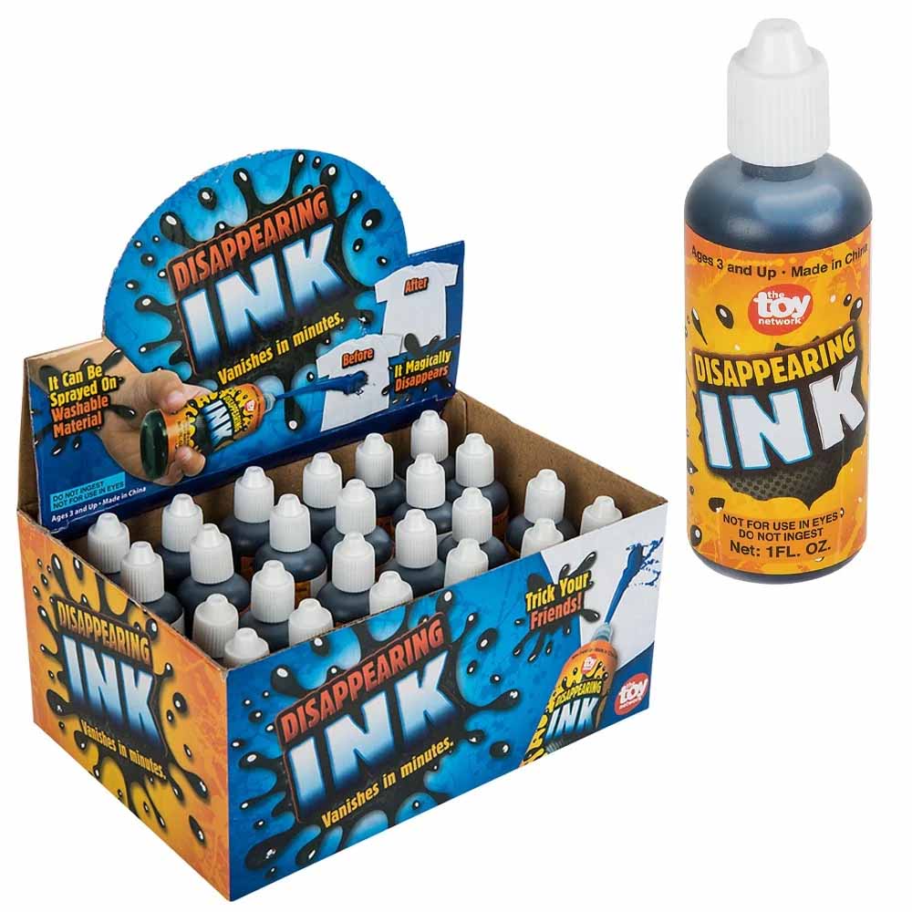 These classic joke bottles of disappearing ink squirt out inky blue and then it disappears. Each bottle contains one ounce.