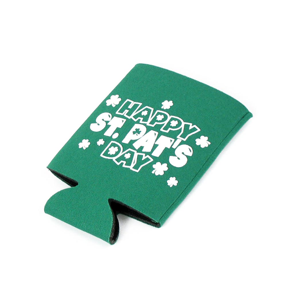 Collapsible foam St. Pat's can cooler with white imprint "Happy St. Pat's Day".