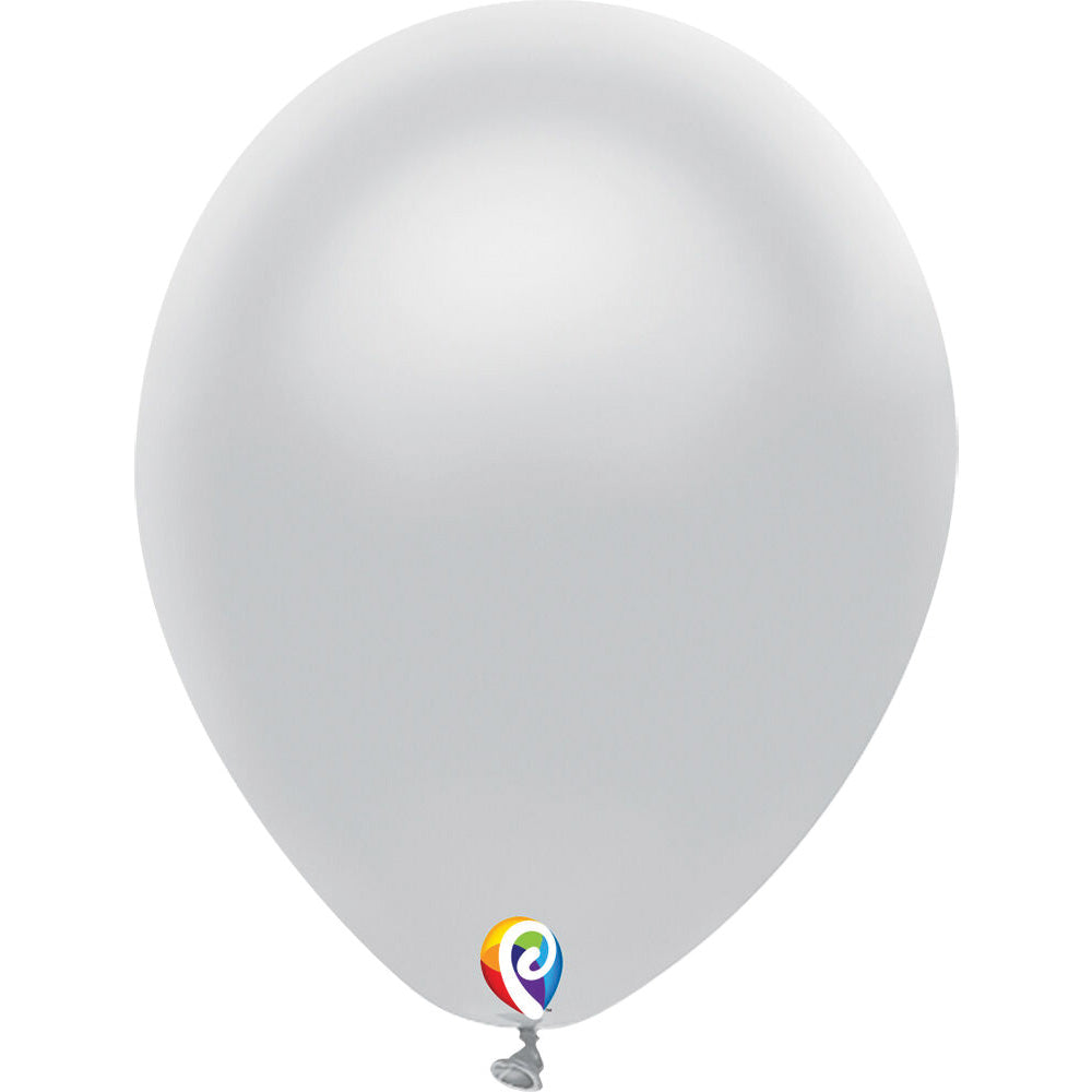 Silver balloons great for making balloon arches, balloon columns, balloon clusters and many more balloon decorations. These round latex balloons can be inflated with helium or air.