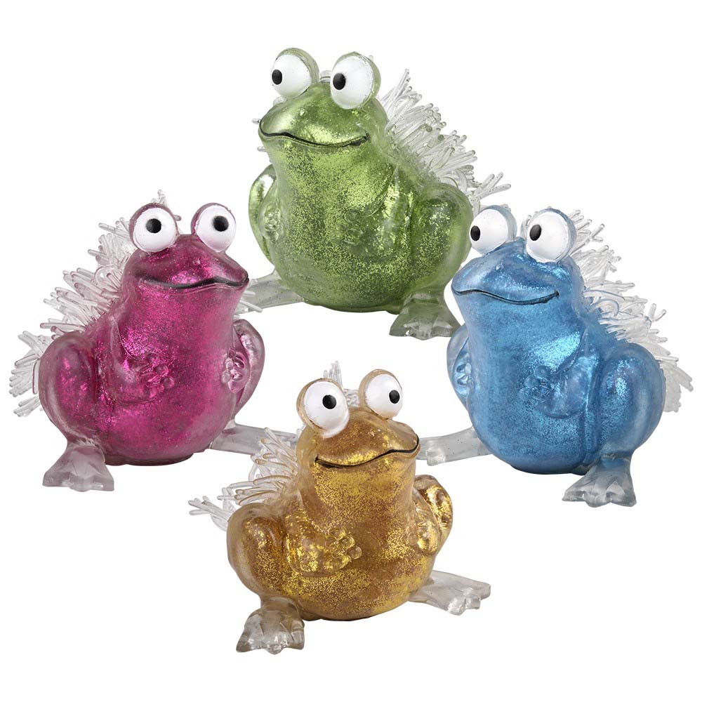 These colorful squishy puffer frogs are a great sensory and stress relieving toy. The eye-catching metallic colors and soft rubbery spikes make these a great impulse item, party favor or carnival prize.