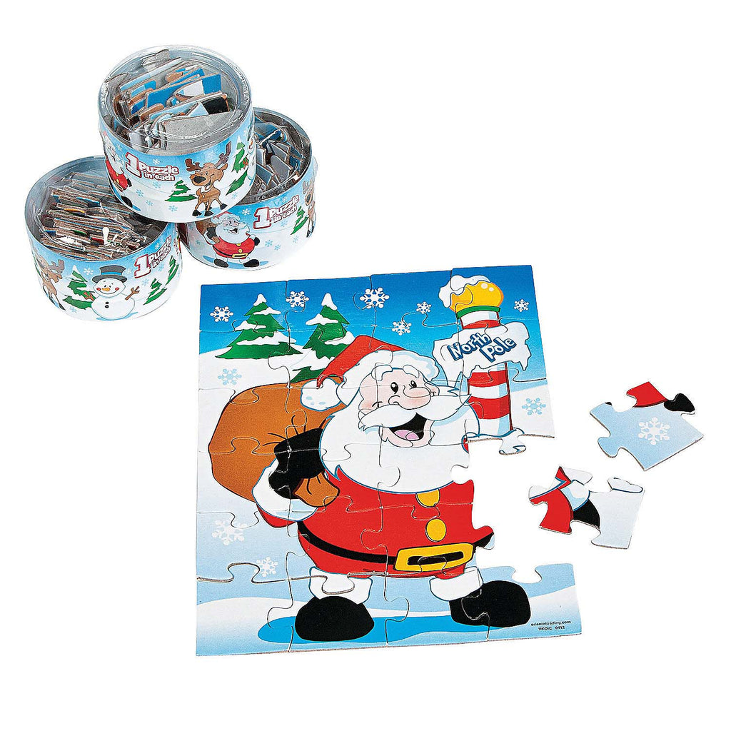 Cardboard jigsaw puzzles in various Christmas and winter themed designs. Put together all 24 pieces to complete the picture.