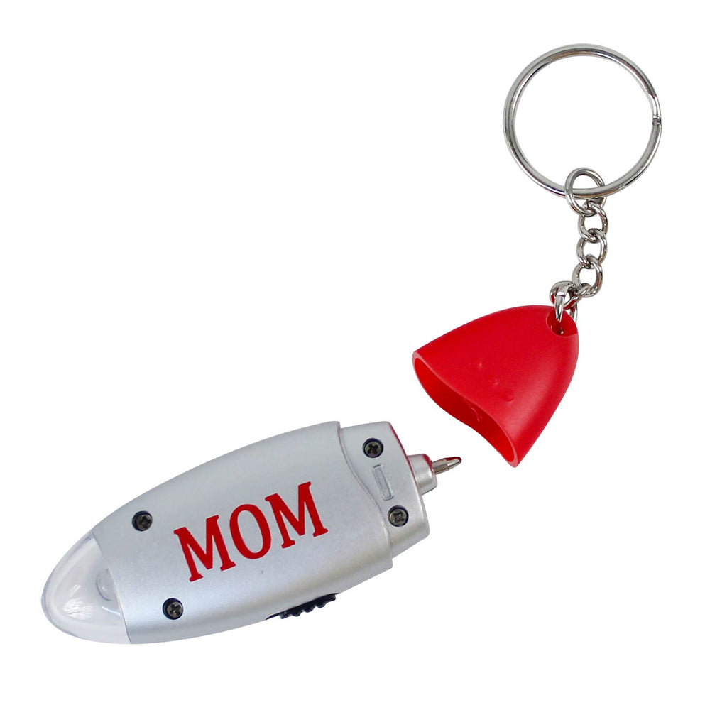 Mom imprint keychain with ink pen and light. NOTE: batteries may no longer function.