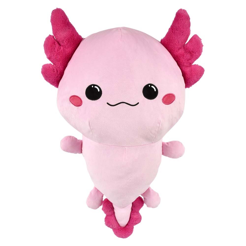 A large plush axolotl with four different color variants. No matter which type you receive it comes with a smile and is soft and squishy. All types come with a hang tag. Great carnival or crane prize.