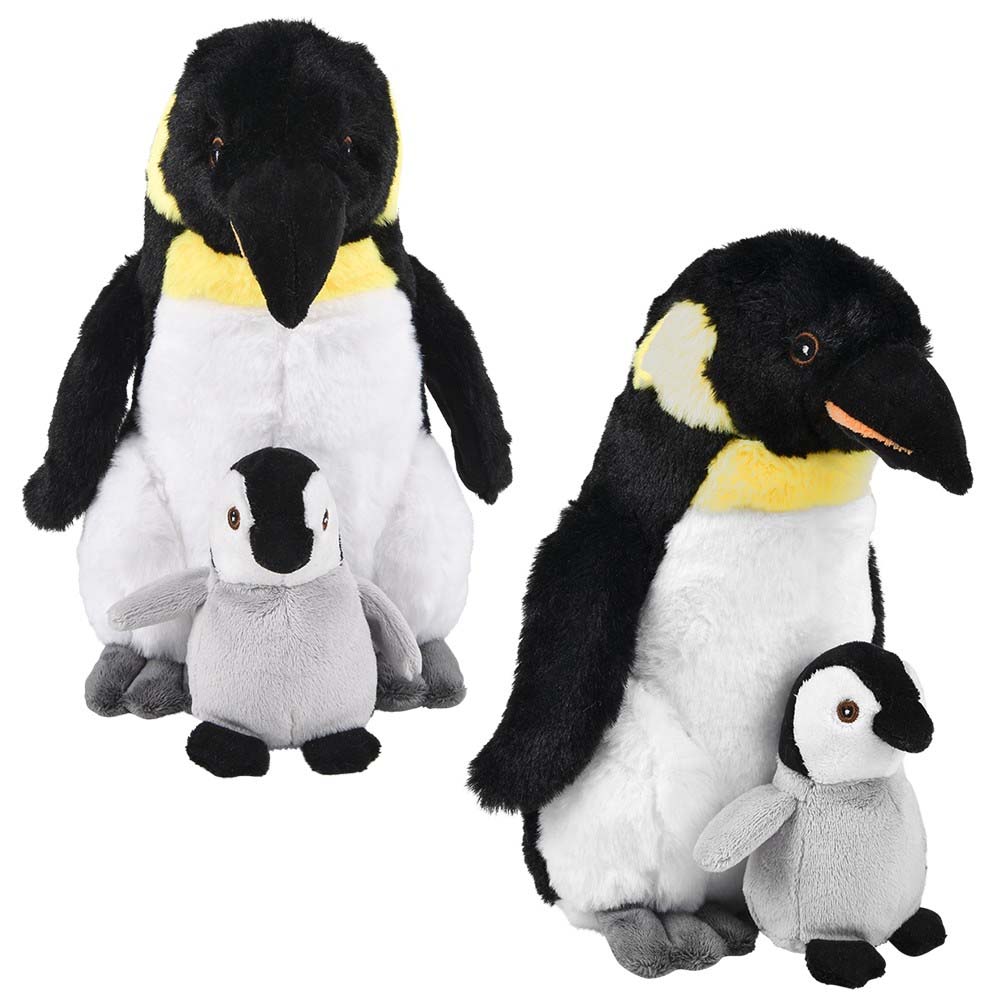 Add a touch of wild cuteness to your gift shop or carnival with this eco-friendly mamma and baby penguin plush toy. Made from recycled materials, this stuffed animal is perfect for the environmentally conscious animal lover. Great plush for zoos and gift shops.