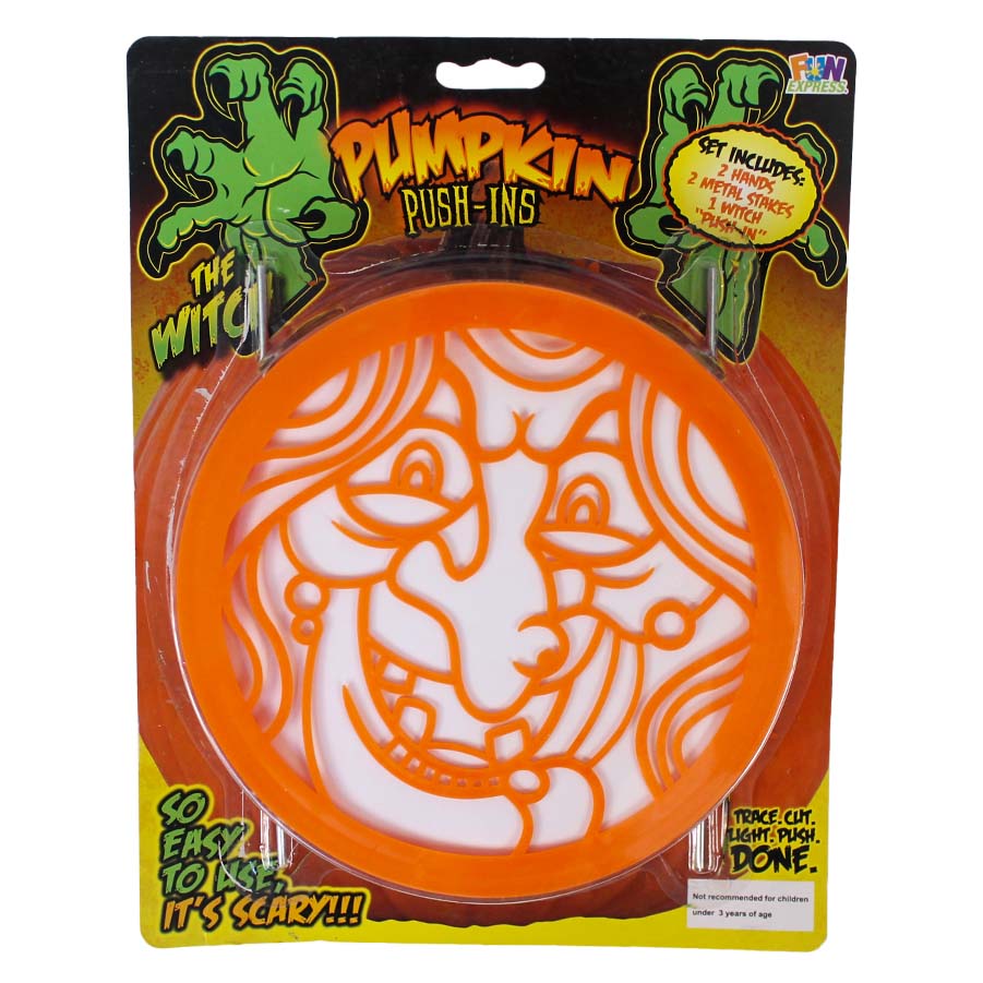 Light up your Halloween night with this monster carving kit. Includes a face, two hands and two metal stakes.