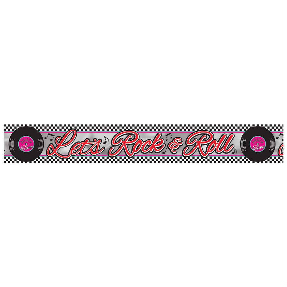 Let's Rock and Roll retro 50's style metallic banner. Design repeats 10 times. 5" high x 25' long.