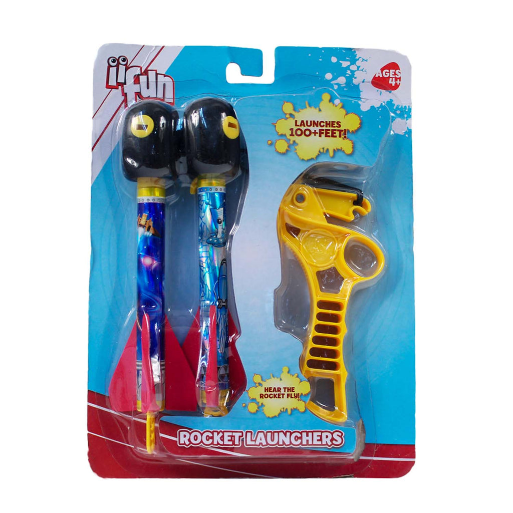 Twin rockets propelled by a plastic and rubber band launching mechanism. Flies over 100 feet! Great choice for a carnival prize or as a fun outdoor activity for kids.