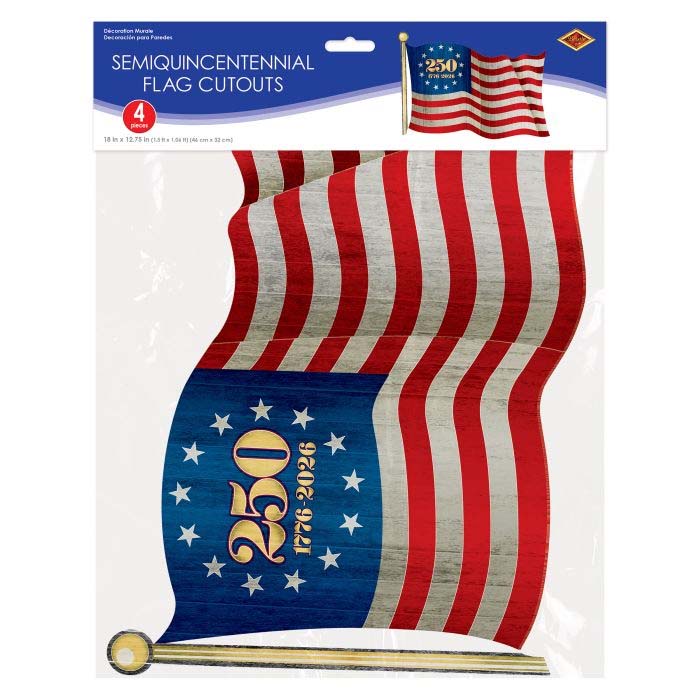 Celebrate 250 years of American history with this semiquincentennial flag cutout! This printed-on-both-sides cardboard cutout measures 12.75" x 18" and adds a patriotic touch to your decor.
