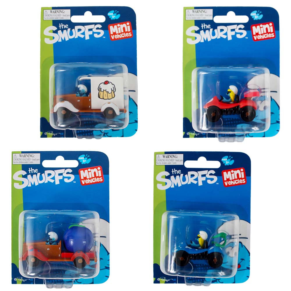 A Smurfs mini vehicle and driver in one of a variety of styles. These licensed toys are great for lovers of The Smurfs and can be used for both play and display purposes.